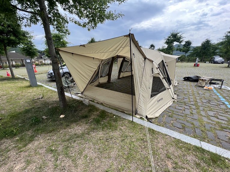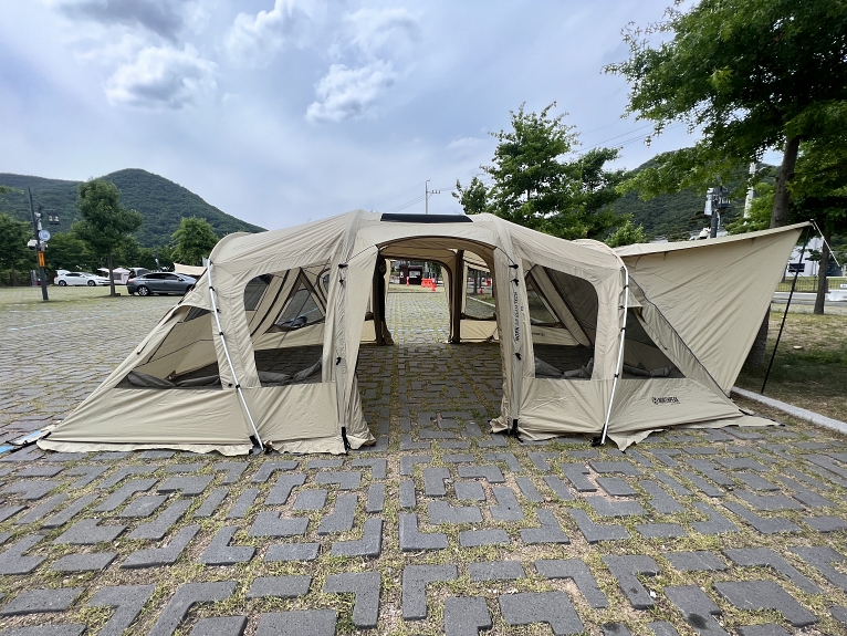 그리고 가장 큰 단점은 바로! 어느 캠핑장을 가더라도 텐트를 설치할 수 있는 사이트 크기를 반드시 확인해야 합니다.