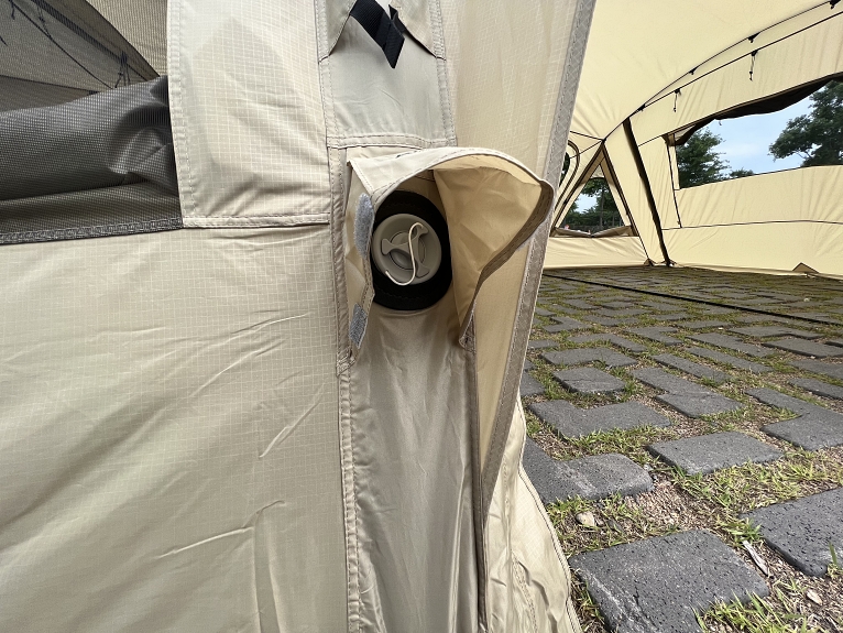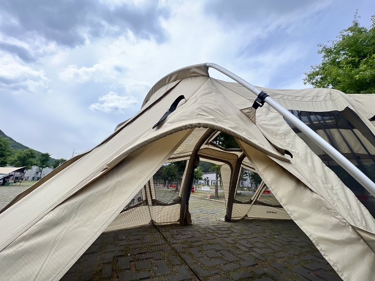 그리고 텐트 정면 출입구에 캐노피 사이드 월 시스템이 적용되었습니다.